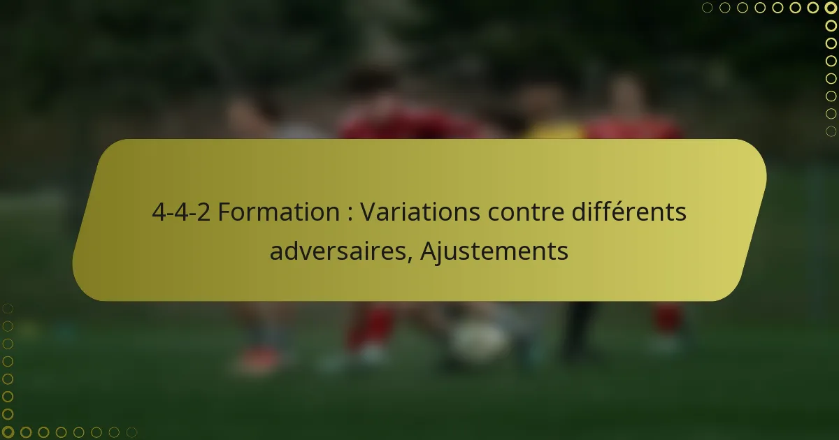 La formation 4-4-2 est un schéma tactique largement utilisé dans le football, comprenant quatre défenseurs, quatre milieux de terrain et deux attaquants, qui établit un équilibre entre la solidité défensive et les options offensives. Pour maximiser son efficacité, les équipes doivent ajuster leur approche en fonction des forces et des faiblesses de leurs adversaires, adaptant les rôles des joueurs et les stratégies tactiques pour exploiter des vulnérabilités spécifiques. Comprendre ces variations est essentiel pour atteindre une performance optimale dans des contextes de match divers.
